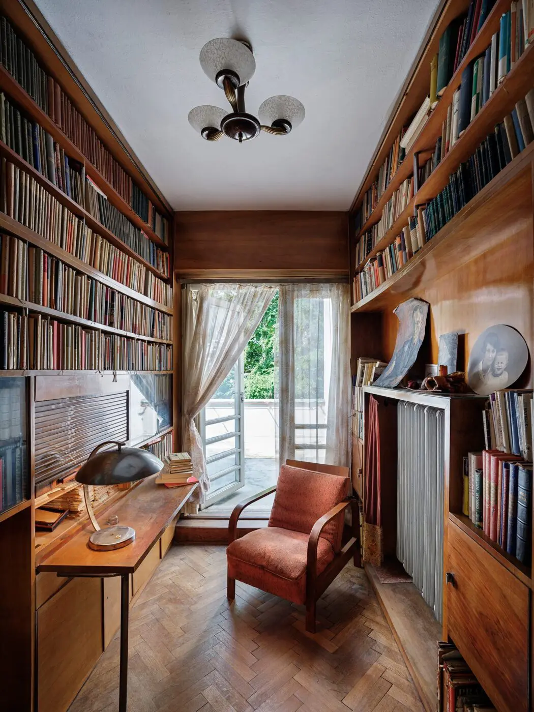 Přízemí domu sloužilo provozním účelům – obsahovalo kanceláře, vzorkovnu a sklad látek. Vstup do obytné části je veden po schodišti do 1. patra, kde se nachází velkorysý obývací pokoj s průběžným oknem, volně stojícím železobetonovým sloupem, polootevřenou pracovnou s knihovnou, a halou se schodištěm, která propojuje další podlaží. Prostor je vzdušný a prosvětlený, s důrazem na praktičnost i estetiku. Zatímco obytné části jsou otevřené, ložnice a kuchyně nabízejí klid a soukromí. Venkovní terasy, pergoly, altán a bazén dotvářejí potřebný komfort i bez přímého propojení se zahradou.