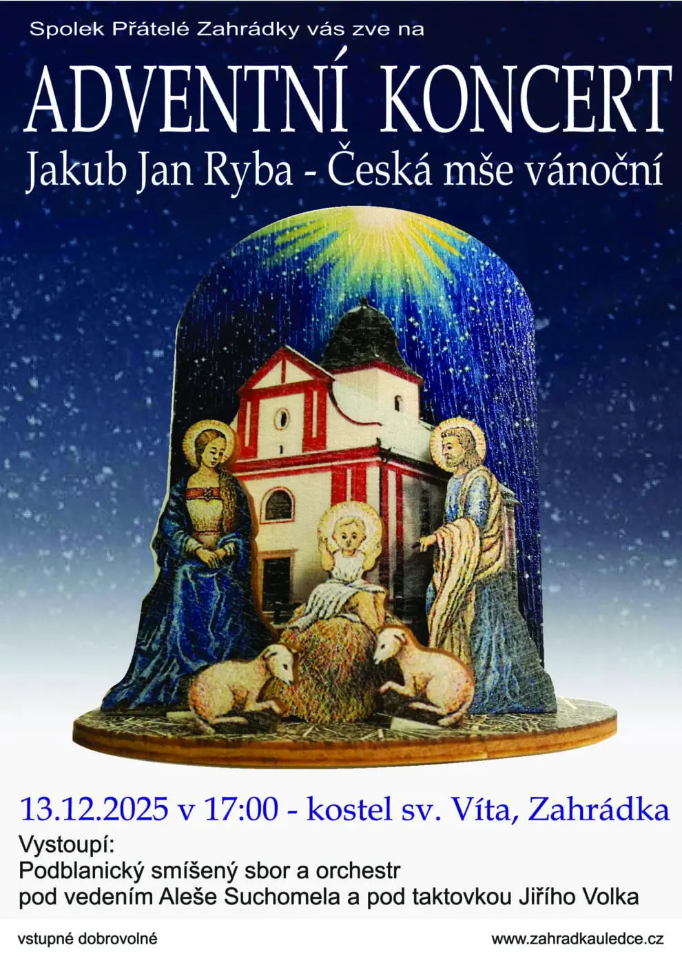 Podblanický sbor a orchestr pod vedení pana Aleše Suchomela a pod taktovkou pana Jiřího Volka přednese vánoční klasiku - Českou mši vánoční Jakuba Jana Ryby.