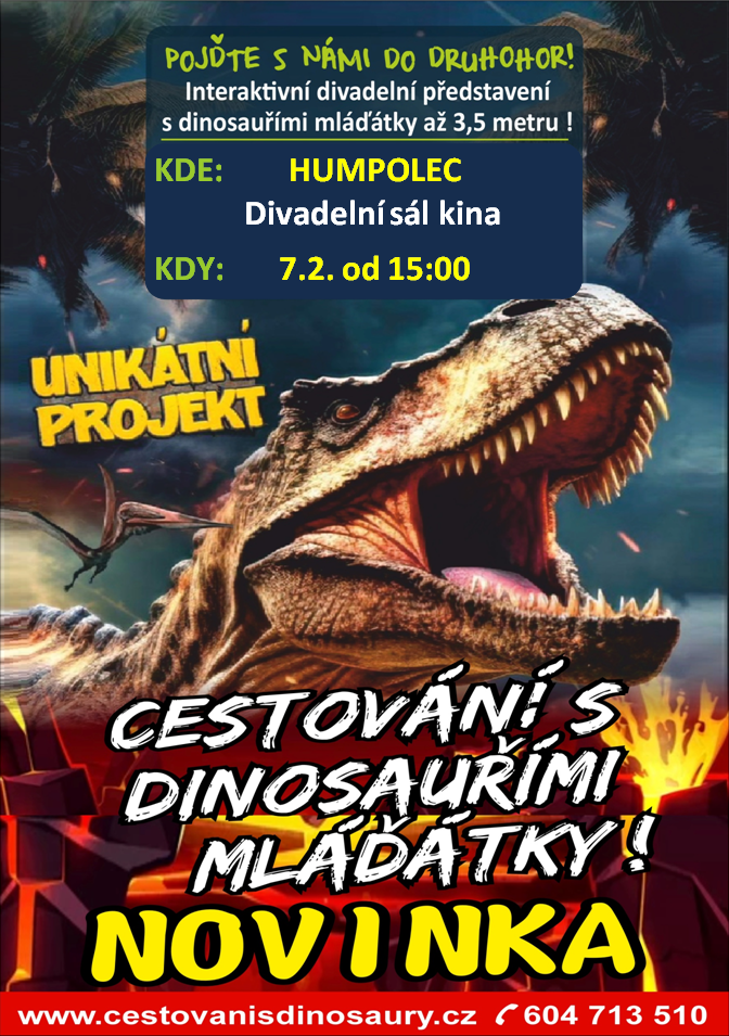 Interaktivní divadelní představení, vedené formou přednášky, která je koncipována pro děti předškolního věku a děti na základních školách na téma život dinosaurů v druhohorách. Toto představení je doplněno replikami fosilií ve skutečných velikostech a animatronickými dinosaury různých velikostí od malých mláďátek až po sedmimetrové exempláře. V kulturních domech a sálech jsme omezeni poskytnutými prostorami, a tak největší z dovezených exemplářů mají na délku 3,5 m. Pak se jedná o akci s mláďátky. Naši dinosauři jsou ovládáni 1 až 2 operátory a interagují s obecenstvem. Děti tak získávají dojem, že se setkávají se skutečným živým tvorem. Délka programu je cca 100 minut.
