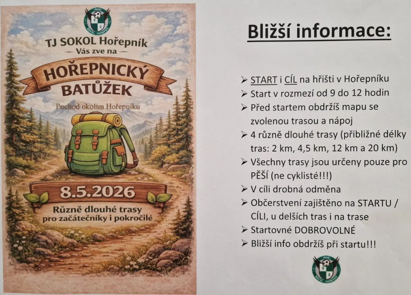 TJ Sokol Hořepník vás zve na pochod okolím Hořepníku.