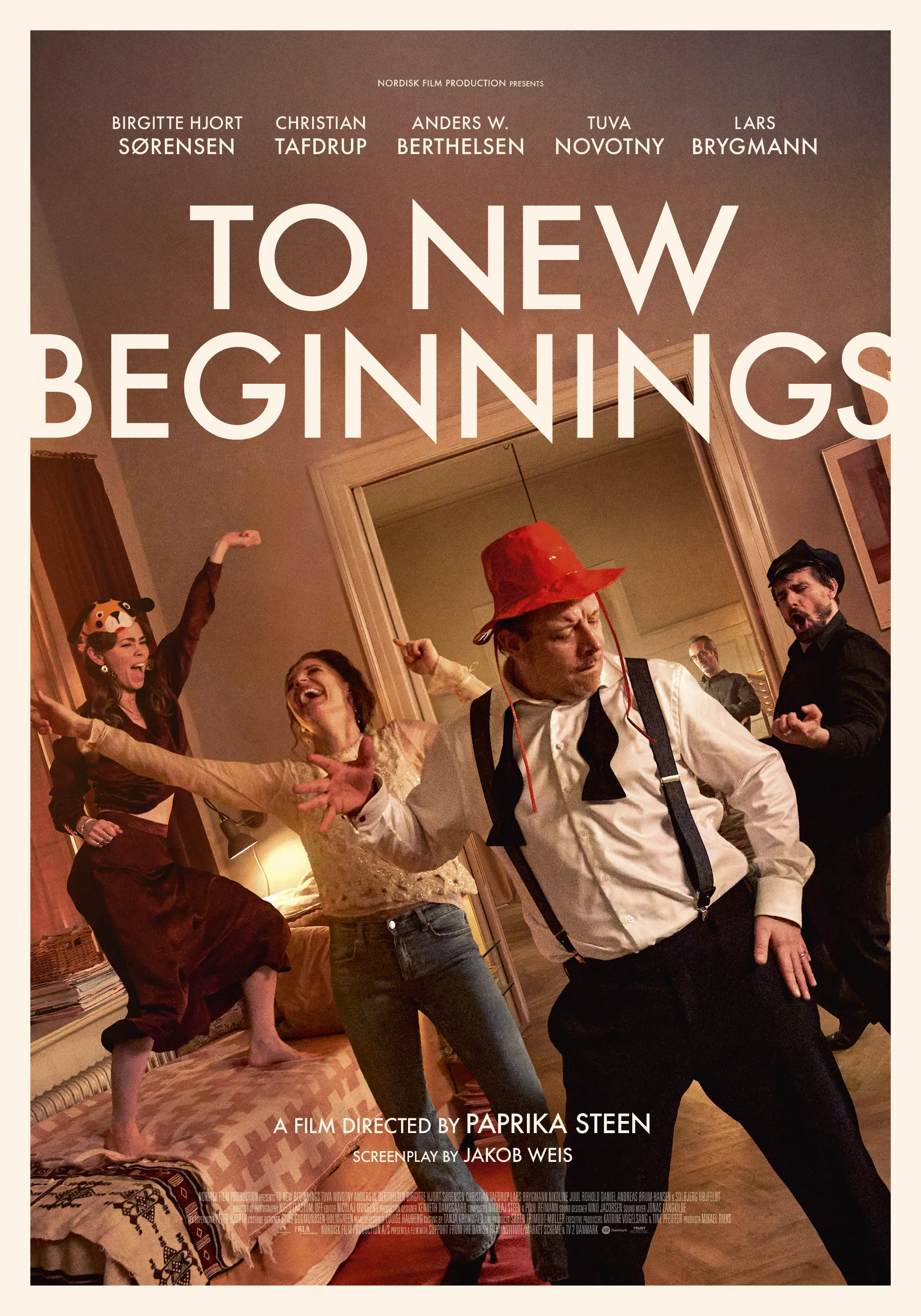 Film NA NOVÉ ZAČÁTKY! nás zavádí na silvestrovskou oslavu, která se vyvine v noc plnou nečekané upřímnosti. Dánská herecká hvězda Paprika Steen ve svém nejnovějším režijním počinu, jenž připomíná její úspěšný snímek Svátky klidu a míru, vypráví vřelé, poutavé a humorné drama o starých přátelích, vyrovnávajících se s životními změnami.
