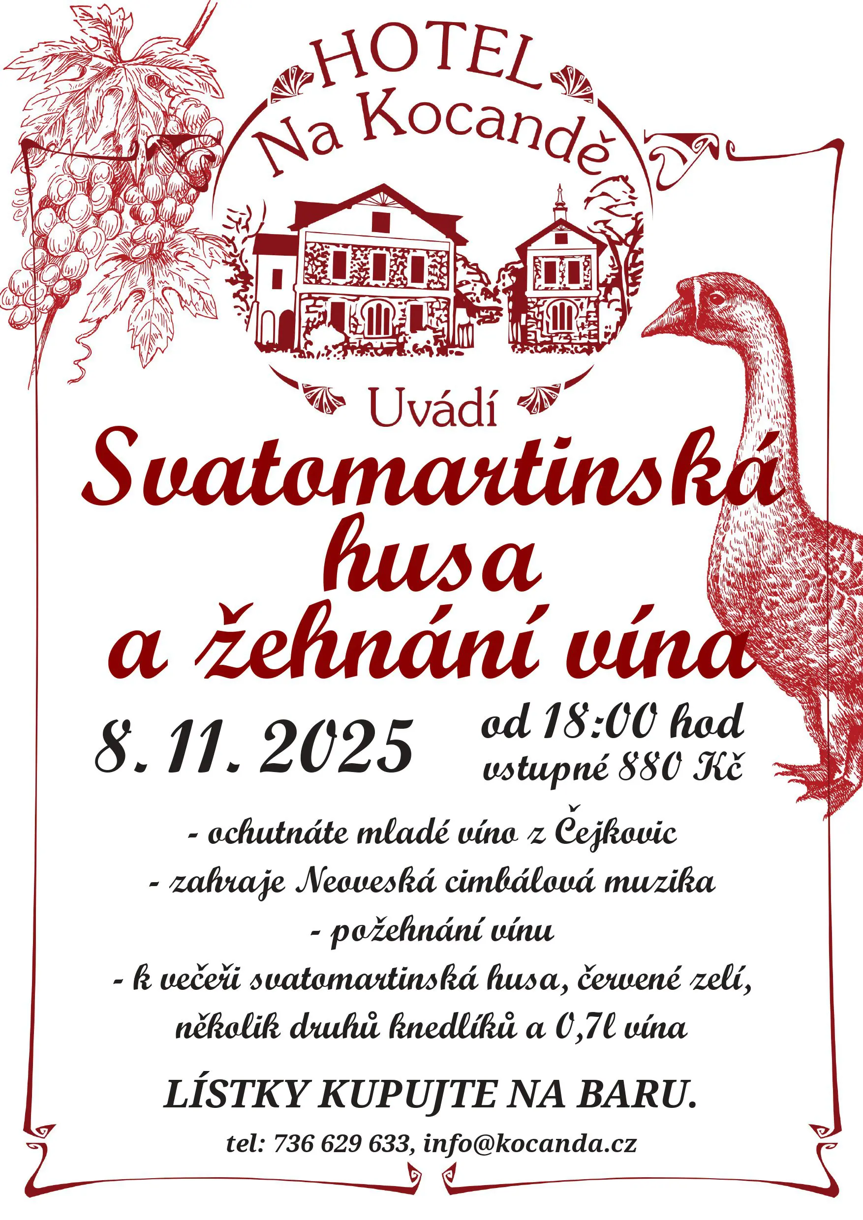 - k večeři svatomartinská husa, červené zelí, několik druhů knedlíků a 0,7l vína