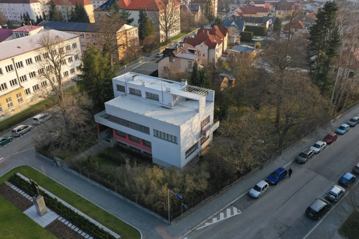 Součástí prostorových úprav této části města byla i stavba vily Otakara Meda, obchodníka se suknem, který si jako architekta zvolil Josefa Gočára. Funkcionalistická stavba kombinující železobetonovou a zděnou konstrukci vznikla v letech 1933-1934. Po roce 1948 byla vila zabavena a její část později využívána jako dětské zdravotní středisko. V roce 1992 se objekt vrátil rodině Medově. Vila je od roku 1958 zapsána v seznamu kulturních památek.
