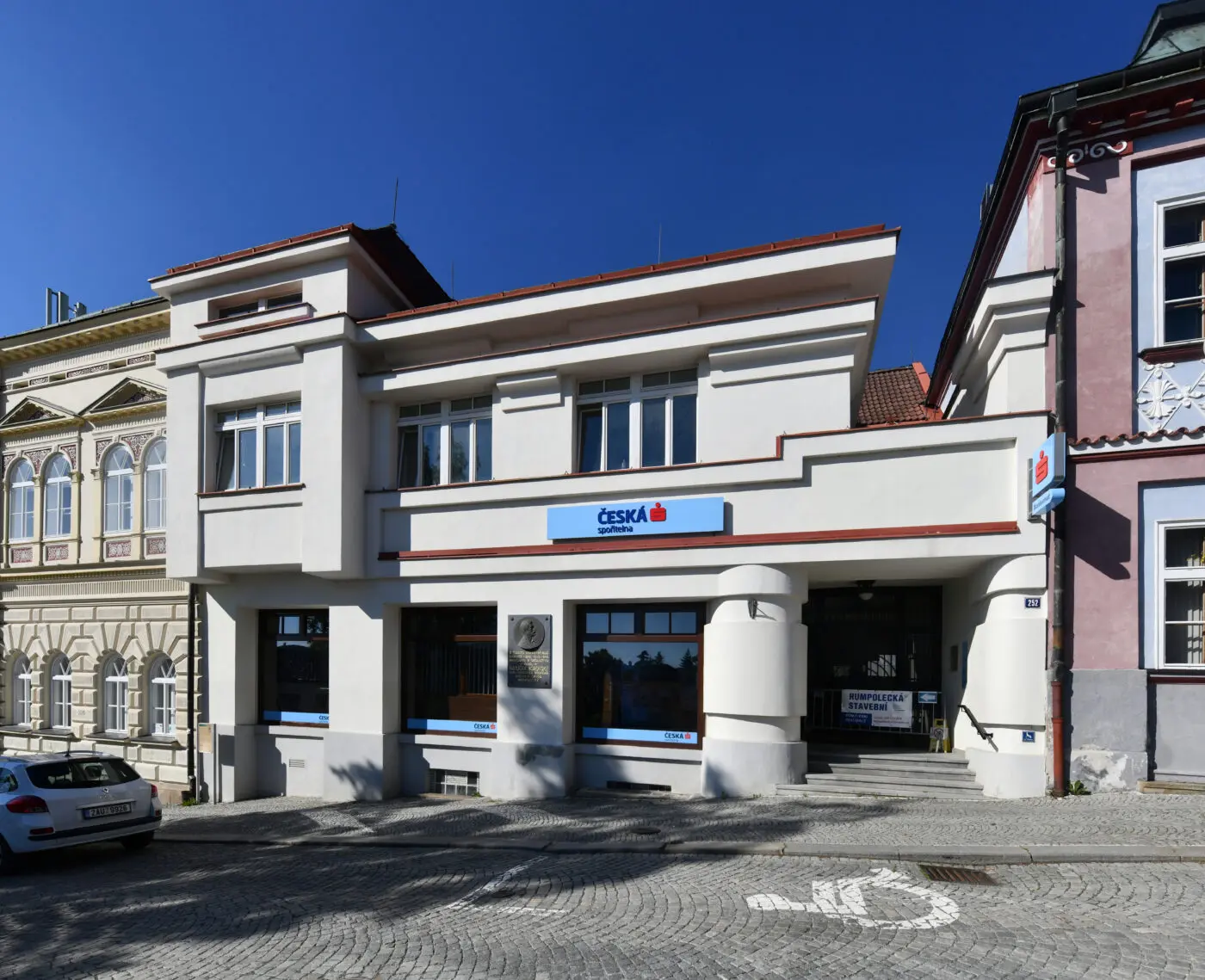 Od poloviny 19. století, po správní reformě, zde sídlil okresní soud. V době první republiky byla pro okresní soud postavena nová budova, dnešní Základní umělecká škola Gustava Mahlera, a ze starého soudu se podle projektu jičínského architekta Čeňka Musila stala městská spořitelna. Její základní kámen byl položen roku 1928 a naleznete jej u vstupu do objektu. Dnes v budově sídlí nejen spořitelna, ale také moderní dětské oddělení knihovny a přednáškový sál.