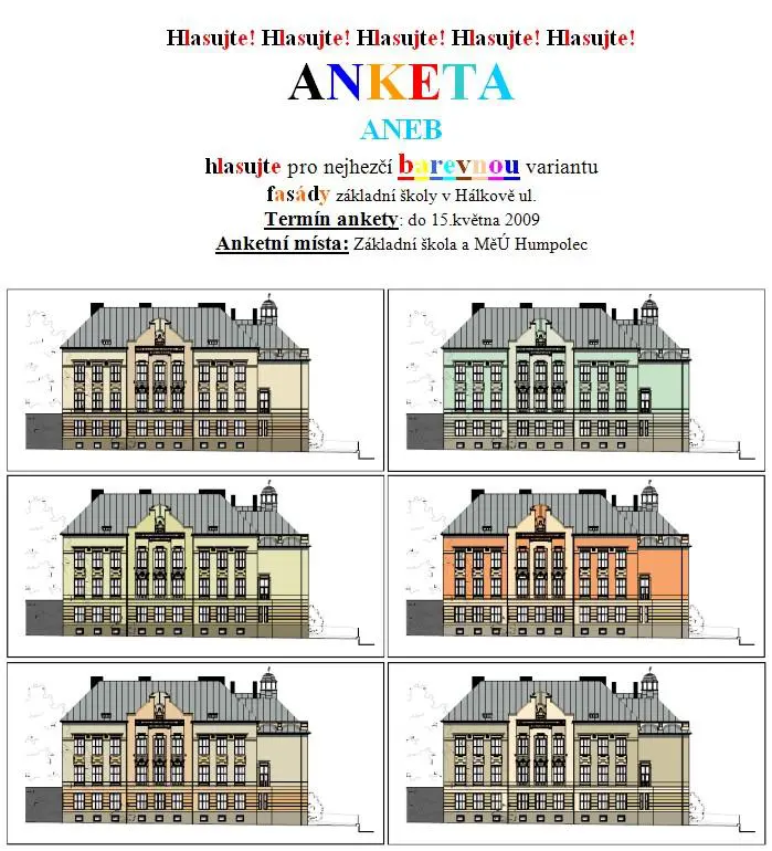 Anketa – barevná varianta fasády ZŠ Hálkova