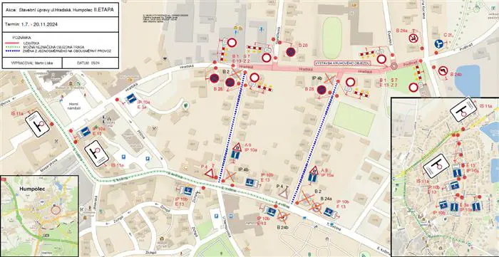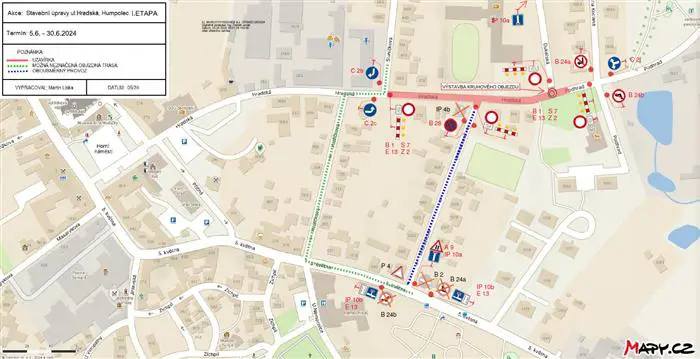 - Uzavírka od křižovatky s ulicí Hrdličkova po ulici Podhrad.