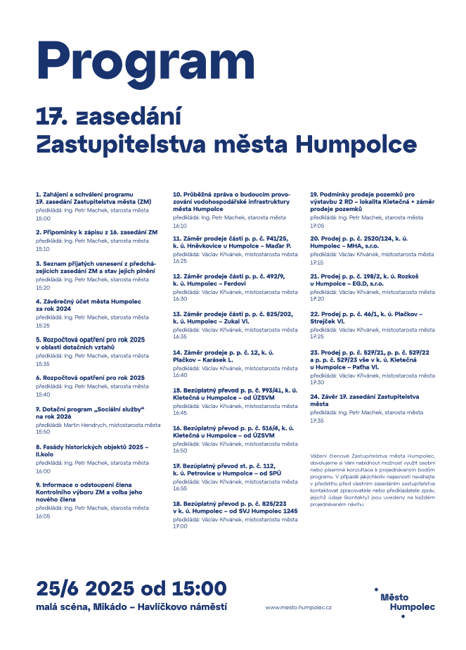 Pozvánka na 17. zasedání Zastupitelstva města Humpolce