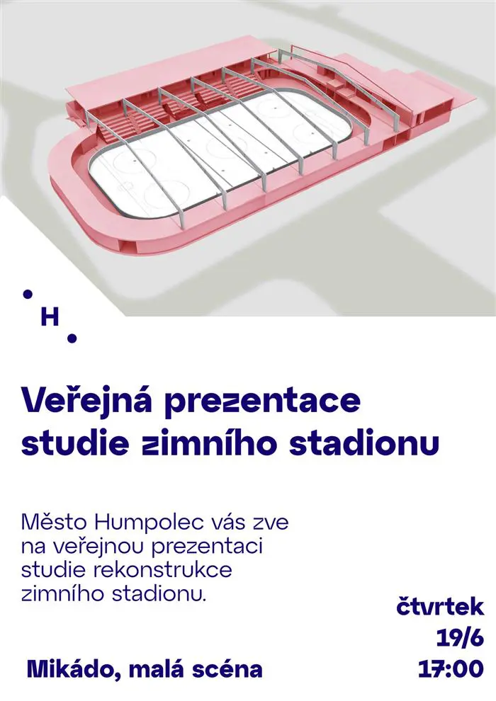 Město Humpolec vás zve na veřejnou prezentaci studie rekonstrukce zimního stadionu, která se uskuteční ve čtvrtek 19. června od 17 hodin v Mikádu.