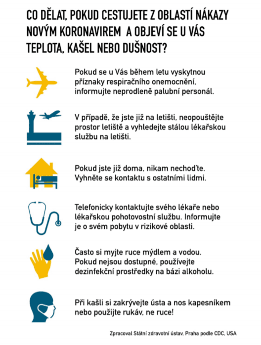 Sledujte aktuální informace od Ministerstva zdravotnictví, a pokud možno, řiďte se doporučeními odborných orgánů, které situaci neustále monitorují a vydávají upozornění (https://bit.ly/2T3lVZV)